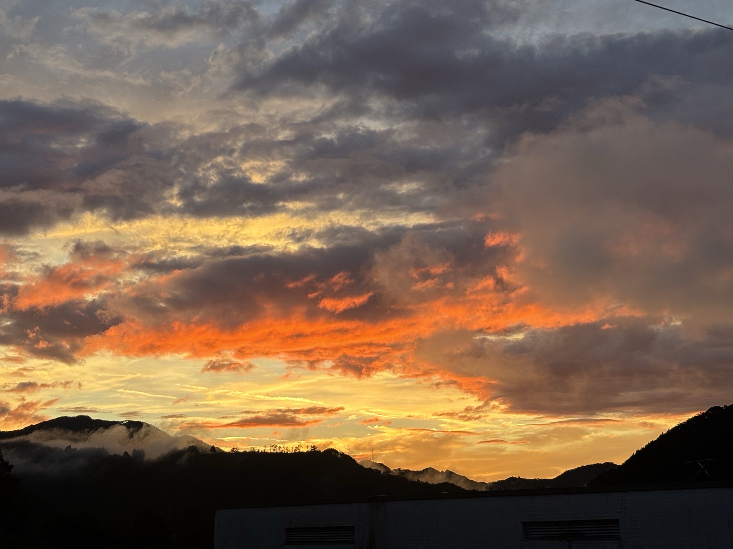 夕暮れ時には、店内の窓越しに美しい夕焼けが🌇