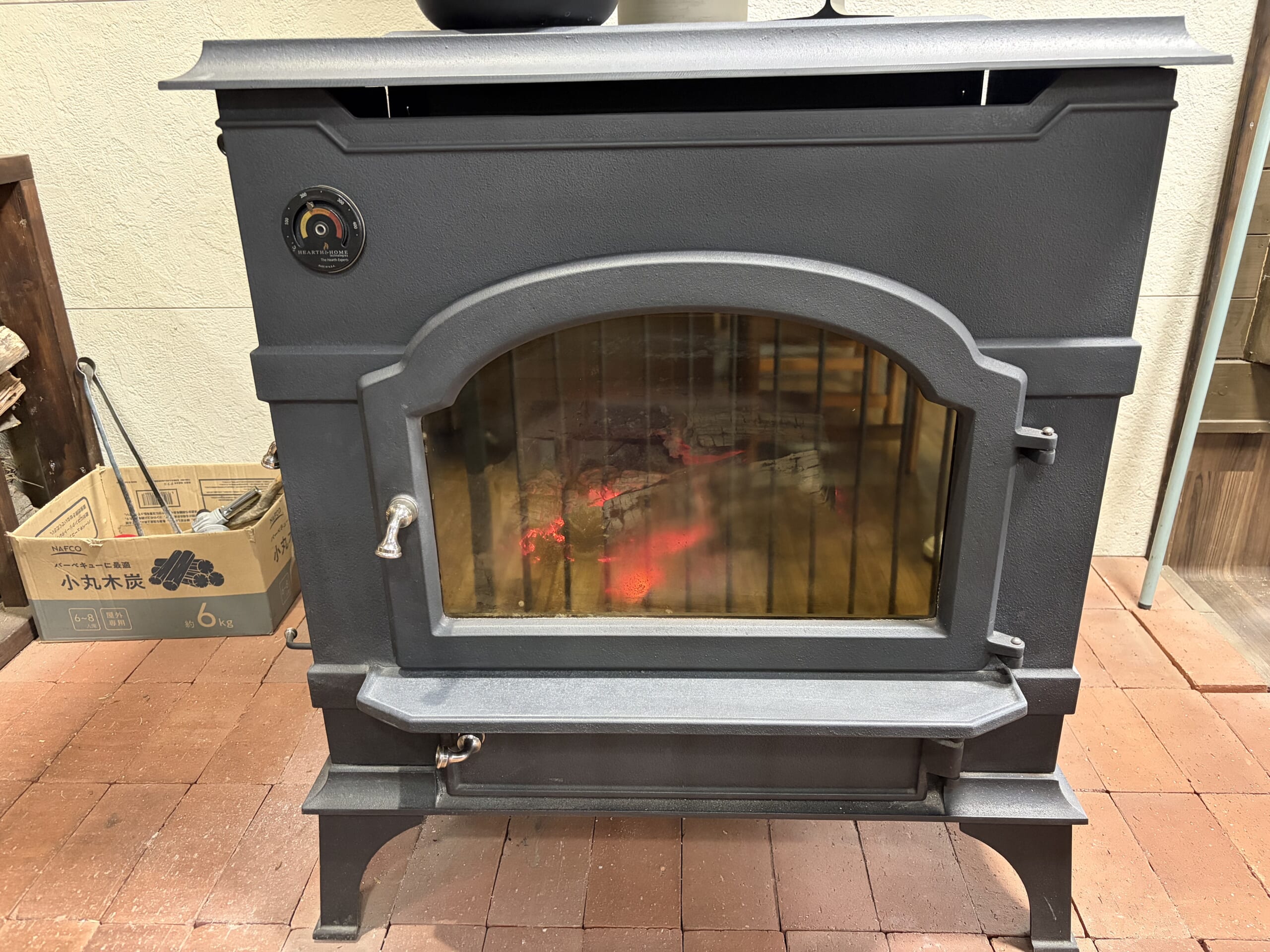 店内に入ってすぐ、炎のぬくもりが空気をやさしく包む薪ストーブ🔥